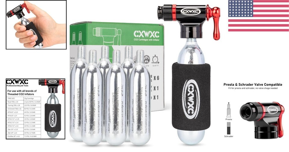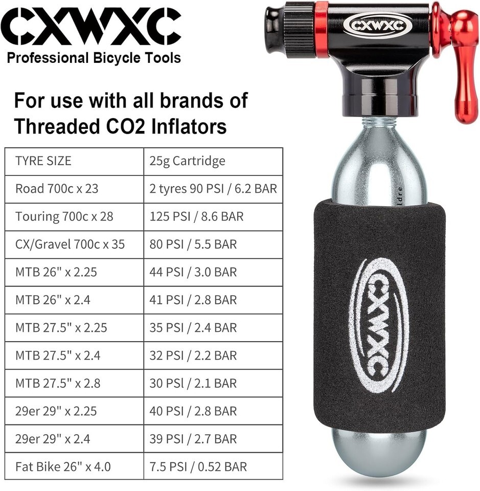 - CO2 Inflator Kit with 16g/25g Cartridges - Fast Tire Inflation for Cyclists