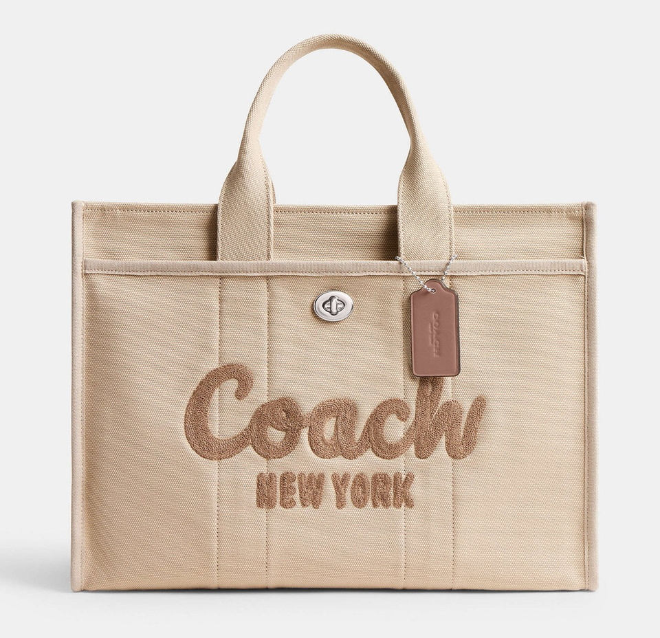 100% Authentic! NO Fakes!! 100% Brand New With Tag ($295 original Price plus tax) in Coach's original packaging! Never used, in perfect condition! No defects, marks, or scratches etc!! Carry as much (or as little) as you like with the extra-large Cargo tote by COACH, detailed with cursive script and iconic turn-lock closure. Features Extra-large sized bag: 16-1/2"W x 12"H x 7-3/4"D (width is measured across the bottom of handbag); Approx. weight: 3.52 lbs. 5-1/2" L handles; 23" L removable strap Zip closure Silver-tone exterior hardware, turn-lock snap pockets Laptop compatible (std. size 13"-16") Fabric All sales are final; Please contact me if you have any questions.? ?