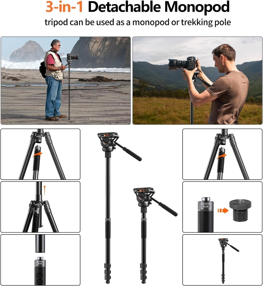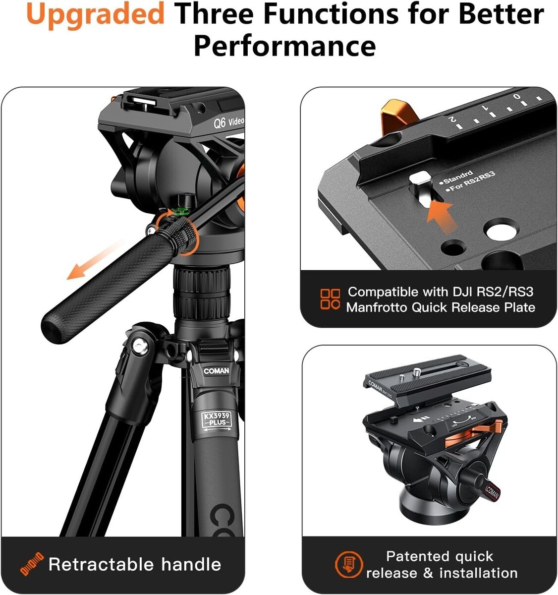 - COMAN Fluid Head Tripod for DSLR Camcorder,Camera Monopod KX3939Plus KX3939Q5S