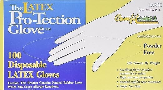 - COMFITWEAR Disposable Latex Gloves, Powder Free Size Large(Pack of 100)