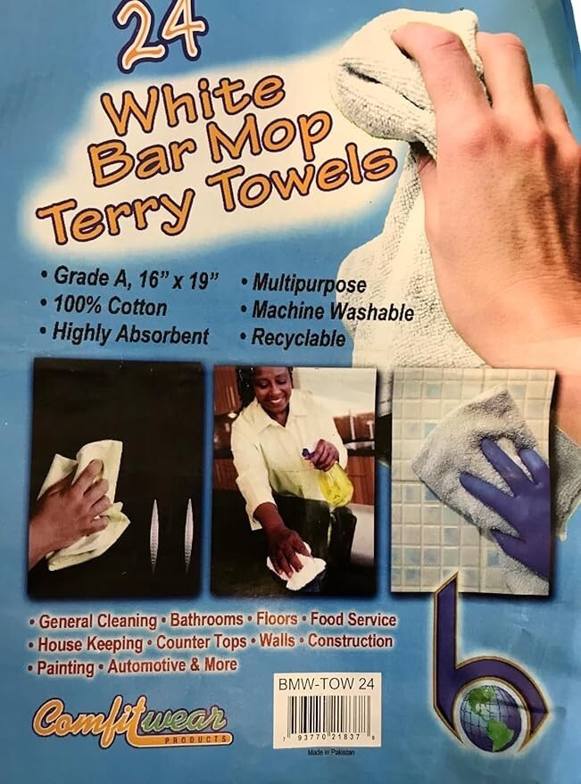 - COMFITWEAR White Cotton Bar Mops, Terry Towels, (16 X 19") 2 Dozen