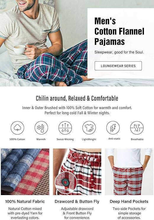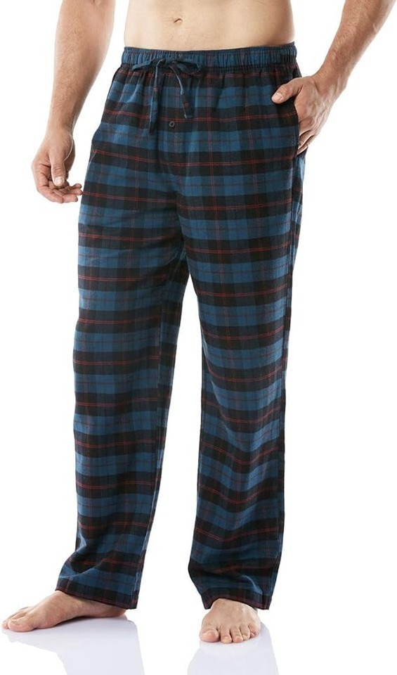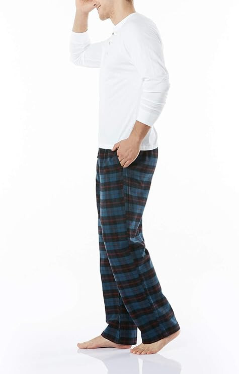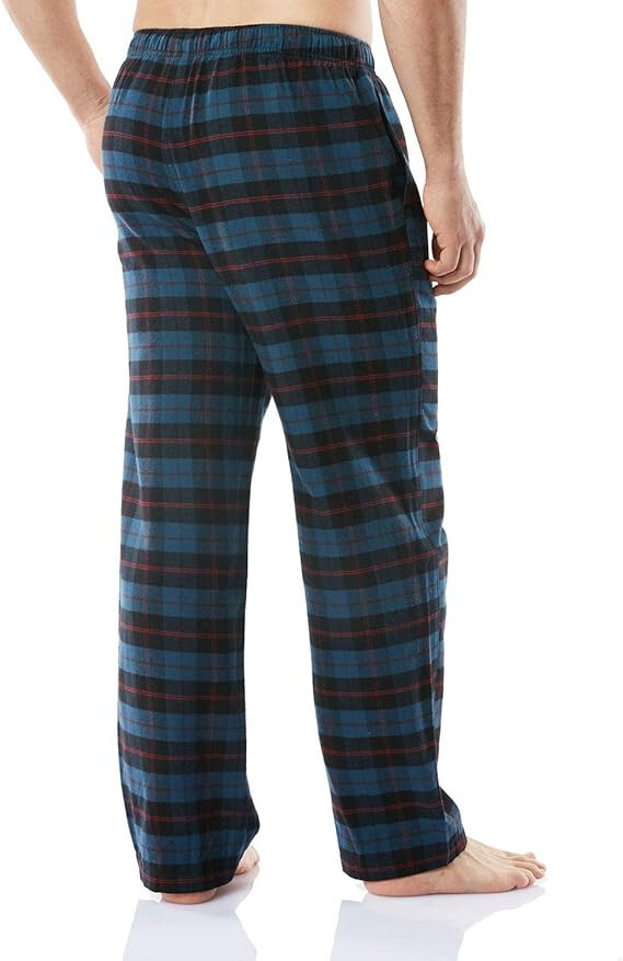 CQR Men's 100% Cotton Plaid Flannel Pajama Pants, Brushed Soft Lounge Sleep PJ Bottoms with Pockets