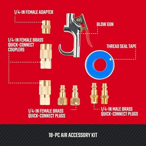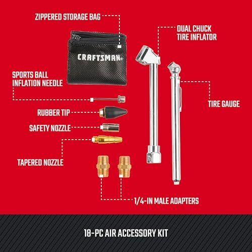 - CRAFTSMAN 18-Piece Air Compressor Accessory Kit, Includes Blow Gun, Tire Inflato