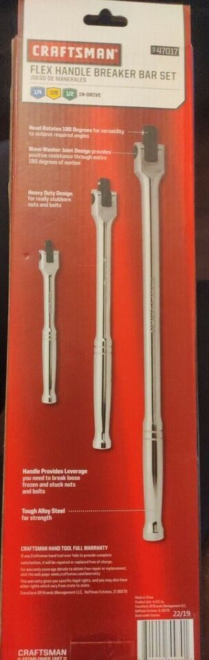 - CRAFTSMAN Flex Handle Breaker Bar Set Polished 3 pc 1/4, 3/8, and 1/2 Drive