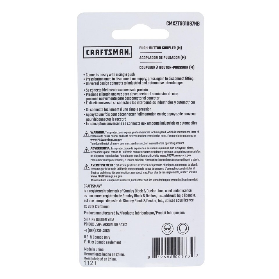 - CRAFTSMAN Push Button Coupler, Male, 1/4-in NPT Industrial and Automotive Plug