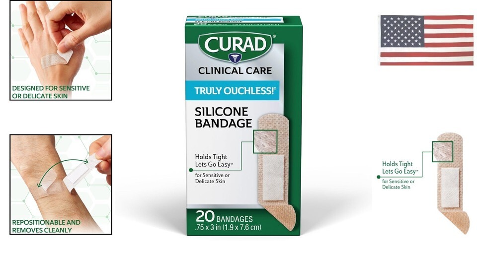 CURAD Truly Ouchless Silicone Bandages for Sensitive Skin (.75" x 3", 20 Count)