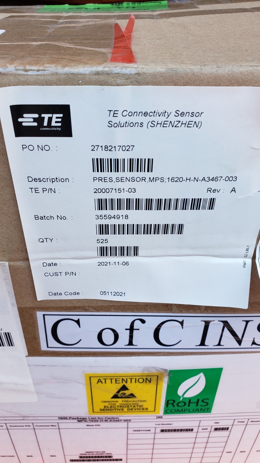 CASE of 525 TE Connectivity MEAS Pressure Sensor # 20007151-03 / 1620-H-N-A3467-003 FREE SHIP