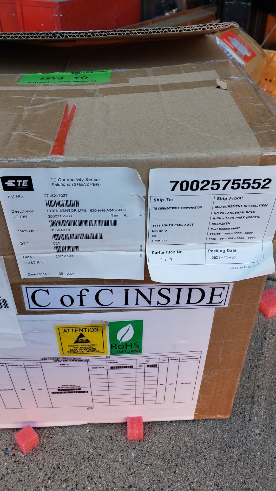 - CUSTODIA of 525 TE Connectivity MEAS Pressure Sensor 20007151-03