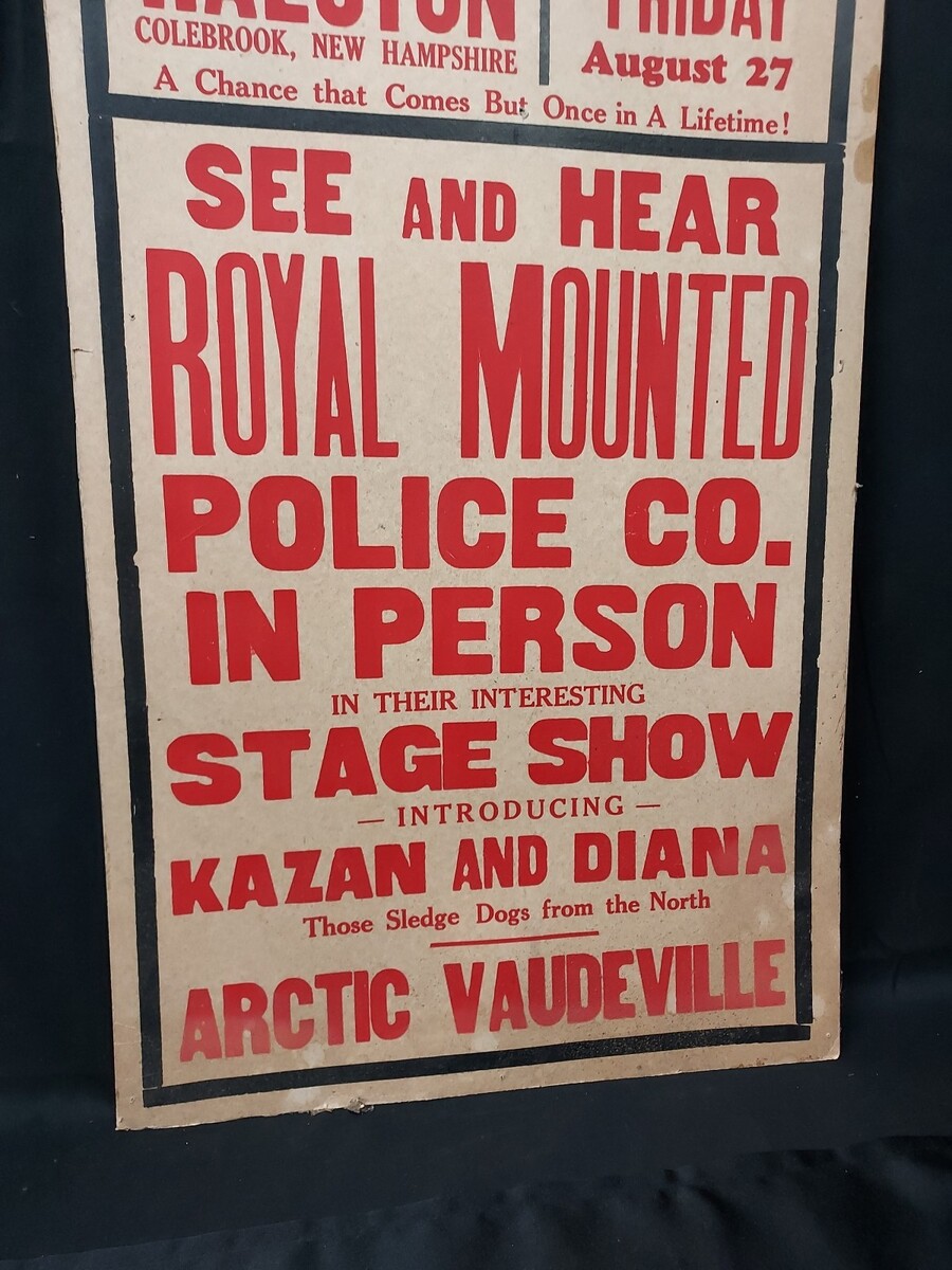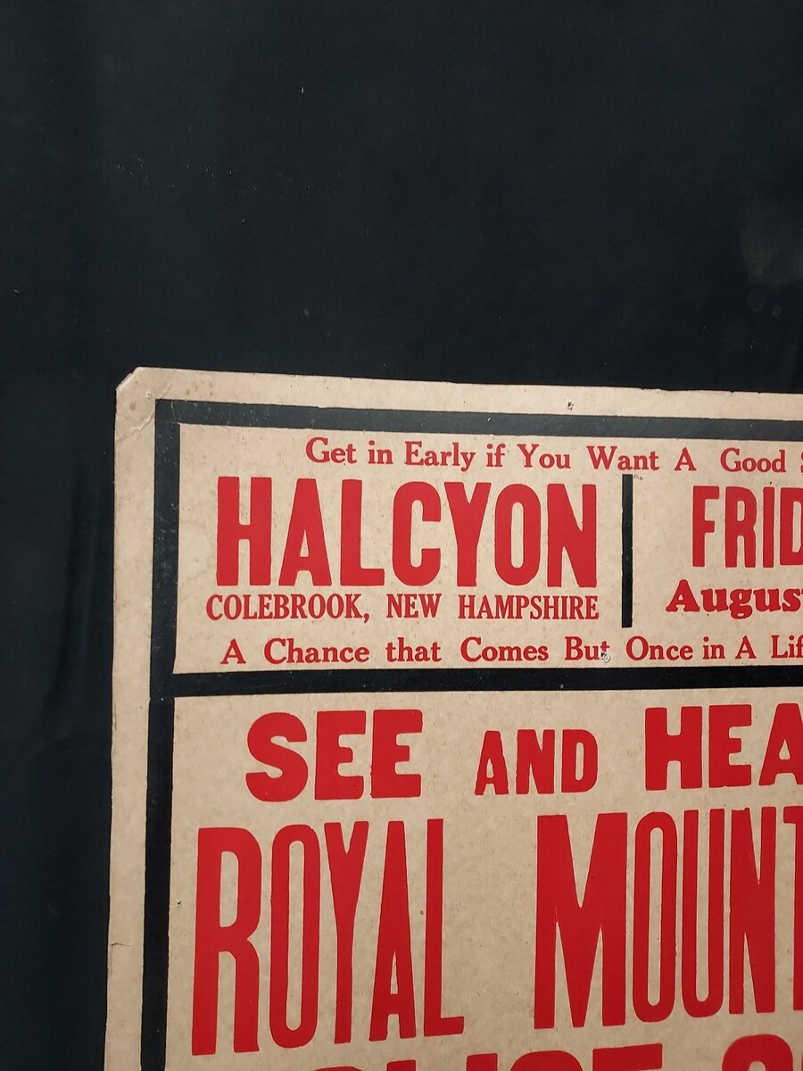 Ca. 1920 Halcyon Theatre Poster Colebrook N.H. - Canadian Royal Mounted Police. Shipped with USPS Ground Advantage.