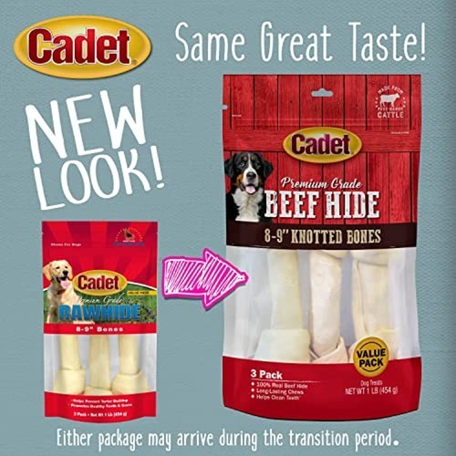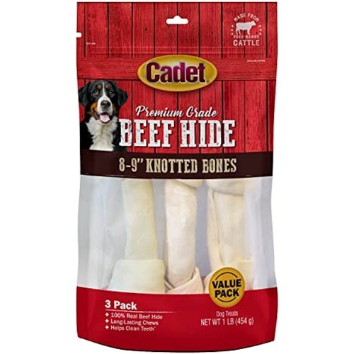 - Cadet Beef Hide Knotted Dog Chews 8-9 Inches, 3 Pack