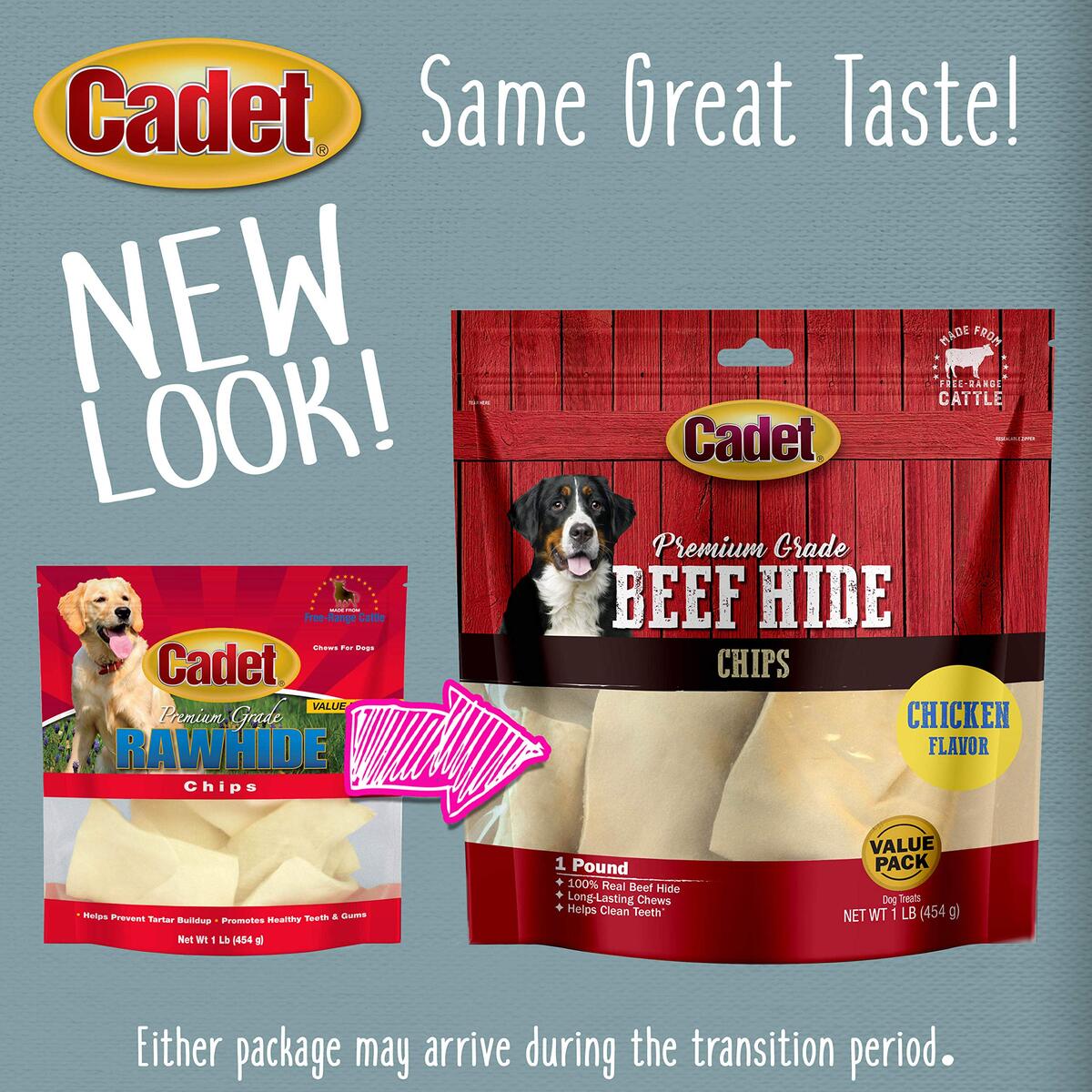 Cadet Premium Grade Beef Hide for Dogs, Rawhide Long Lasting Dog Chews, Chips, C