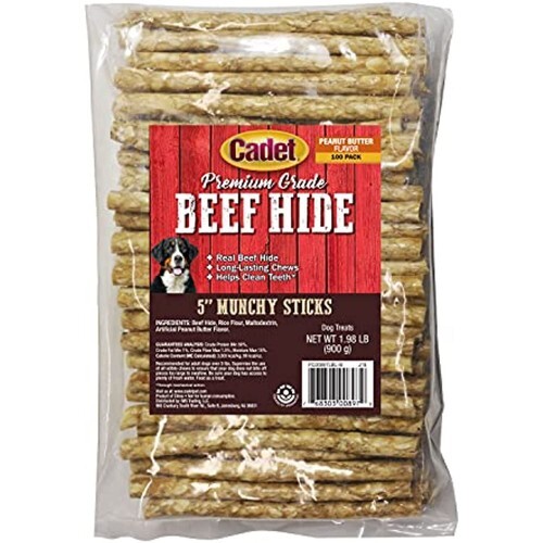 - Cadet Premium Grade Munchy Beef Hide Sticks 5" 100 Count