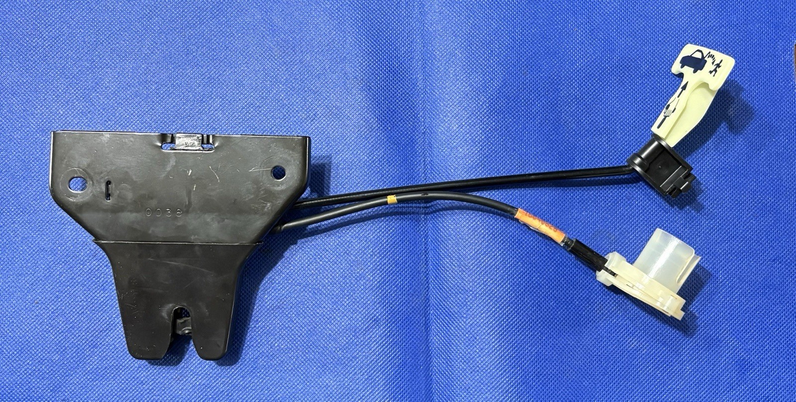 OEM trunk latch / actuator assembly with glow-in-the-dark emergency release handle and cables.