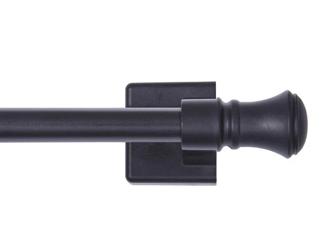 Cafe Curtain Rod, Magnetic-Mounting 7/16" D x 16"-28" L Black, Kenney KN40361V1 The Kenney KN40361V1 Cameron magnet cafe curtain rod is an adjustable, tension-mounted solution designed for quick, tool-free installation on metal window frames or surfaces. Made from durable steel with a sleek black finish, it extends from 16 to 28 inches to fit a wide range of narrow windows, such as those in kitchens, bathrooms, or basements. The 7/16-inch diameter rod provides smooth curtain movement and supports up to 25 lbs, making it suitable for lightweight to medium-weight cafe curtains. Integrated neodymium magnets deliver a strong, secure hold without drilling, screws, or brackets?ideal for renters or temporary setups. Its minimalist design blends seamlessly with modern, farmhouse, or industrial interiors while offering reliable performance and effortless adjustability. Features - Adjustable length from 16 to 28 inches for versatile window fit - Magnetic mounting?no tools, screws, or hardware required - Strong neodymium magnets securely hold rod to metal surfaces - 7/16-inch steel rod ensures durability and smooth curtain glide - Supports up to 25 lbs?ideal for lightweight cafe curtains - Sleek black finish complements a wide range of decors - Tool-free installation and removal in seconds - Perfect for kitchens, bathrooms, laundry rooms, and rental units - Concealed tension mechanism maintains clean, uncluttered look - Includes one complete cafe rod ready for immediate use Specifications - Brand Name: Kenney - Model Name: Kenney KN40361V1 - Part Number: KN40361V1 - Product Type: Cafe Curtain Rod - Material: Steel (rod), Plastic End Caps - Color: Black - Mounting Type: Magnetic (Tension-Mounted) - Adjustable Length: 16 ? 28 in - Rod Diameter: 7/16 in - Max Weight Capacity: 25 lbs - Product Dimensions (Rod): 28 x 0.44 x 0.44 in (fully extended) - Package Dimensions: 20.5 x 3.75 x 2 inches - Item Weight: 0.65 lb - Number of Pieces: 1 - Packaging Type: Boxed - Country of Origin: China - UPC: 042437007467 - Global Trade Identification Number: 00042437007467 - Manufacturer: Kenney Manufacturing Co. Product Application This magnetic cafe rod is used by homeowners, apartment dwellers, and renters seeking a damage-free, temporary window treatment for narrow openings where traditional rods are impractical. It is commonly installed on metal-framed basement windows, refrigerator doors, utility room openings, or steel-backed cabinetry?anywhere a strong magnetic surface exists. The 16?28-inch adjustability accommodates standard cafe window widths, while the 25-lb capacity supports cotton, linen, or polyester cafe curtains without sagging. Ideal for spaces requiring privacy with natural light, such as kitchens and bathrooms, it offers a clean, minimalist solution that installs and removes in seconds. Its tool-free design and modern aesthetic make it a go-to choice for quick updates, seasonal decor changes, or rental-friendly improvements that leave no trace.