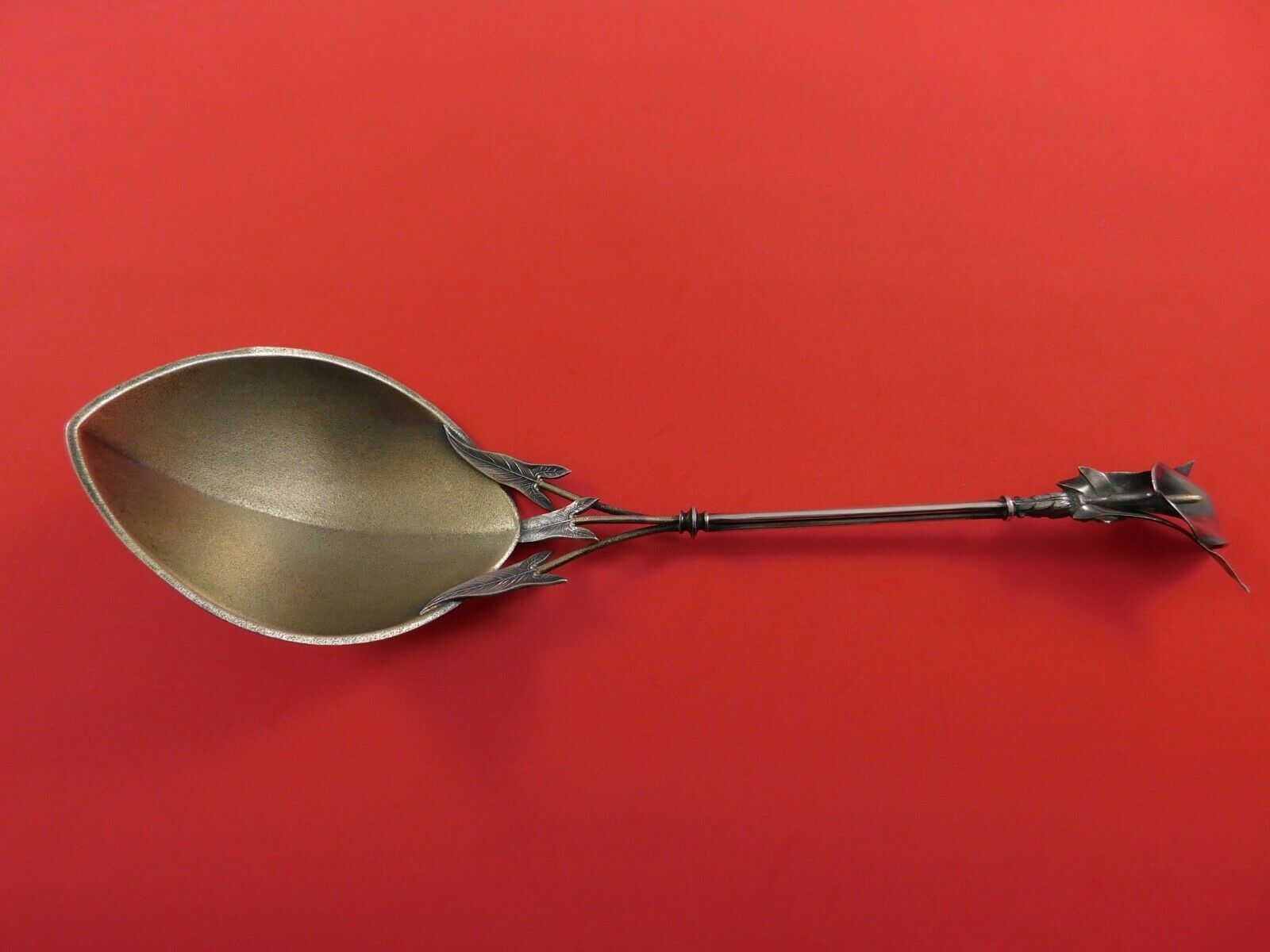 - Calla Lily by Whiting Sterling Silver Berry Spoon Goldwashed Stippled 10 1/2"