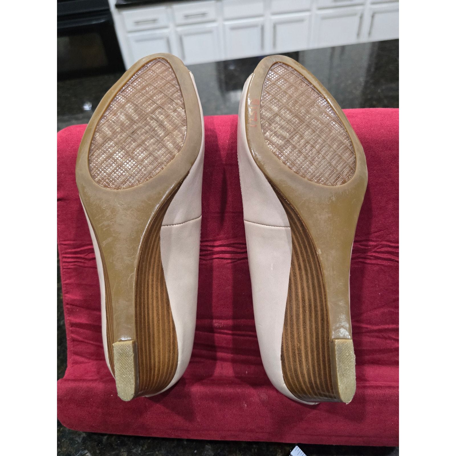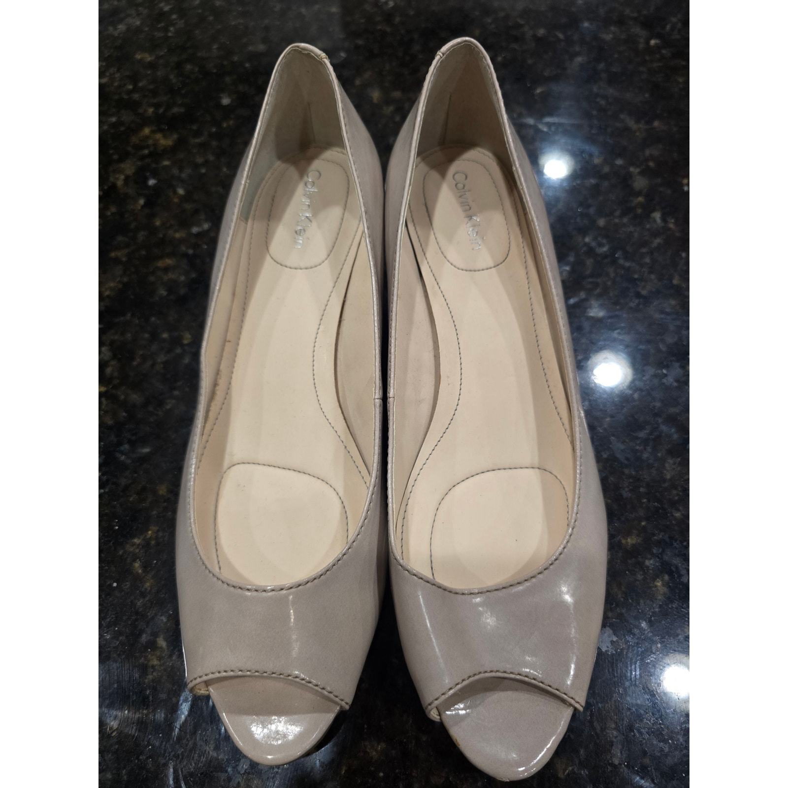 - Calvin Klein Peep Toe Wedge Pumps Women's 7.5M Beige Patent Leather Comfort Heel