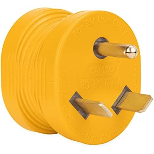 Adapter Connection: Designed to connect to a standard 30-amp power pedestal and adapts the connection to fit a standard residential plug