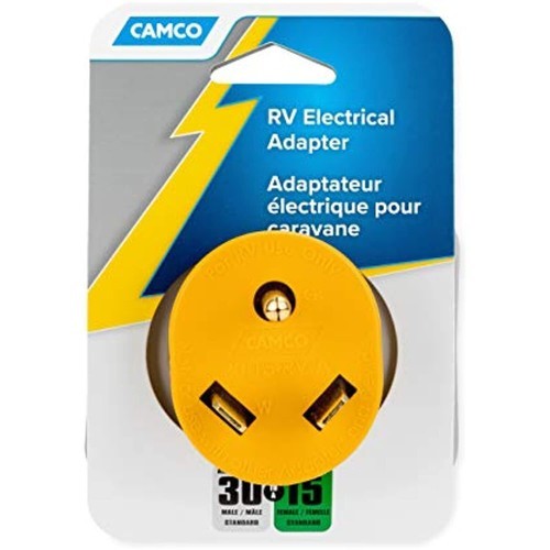 - Camco RV 30AM/15AF Power Grip Electrical Adapter | For Easy Connection of