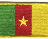 Our rectangular patch features the Cameroon flag with a gold embroidered border. The patch can be sewn on or ironed on. Actual size is approximately 2.25" x 3.25".