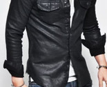 Camicia da uomo in vera pelle di agnello fatta a mano elegante casual NERA motociclista moto/Fs