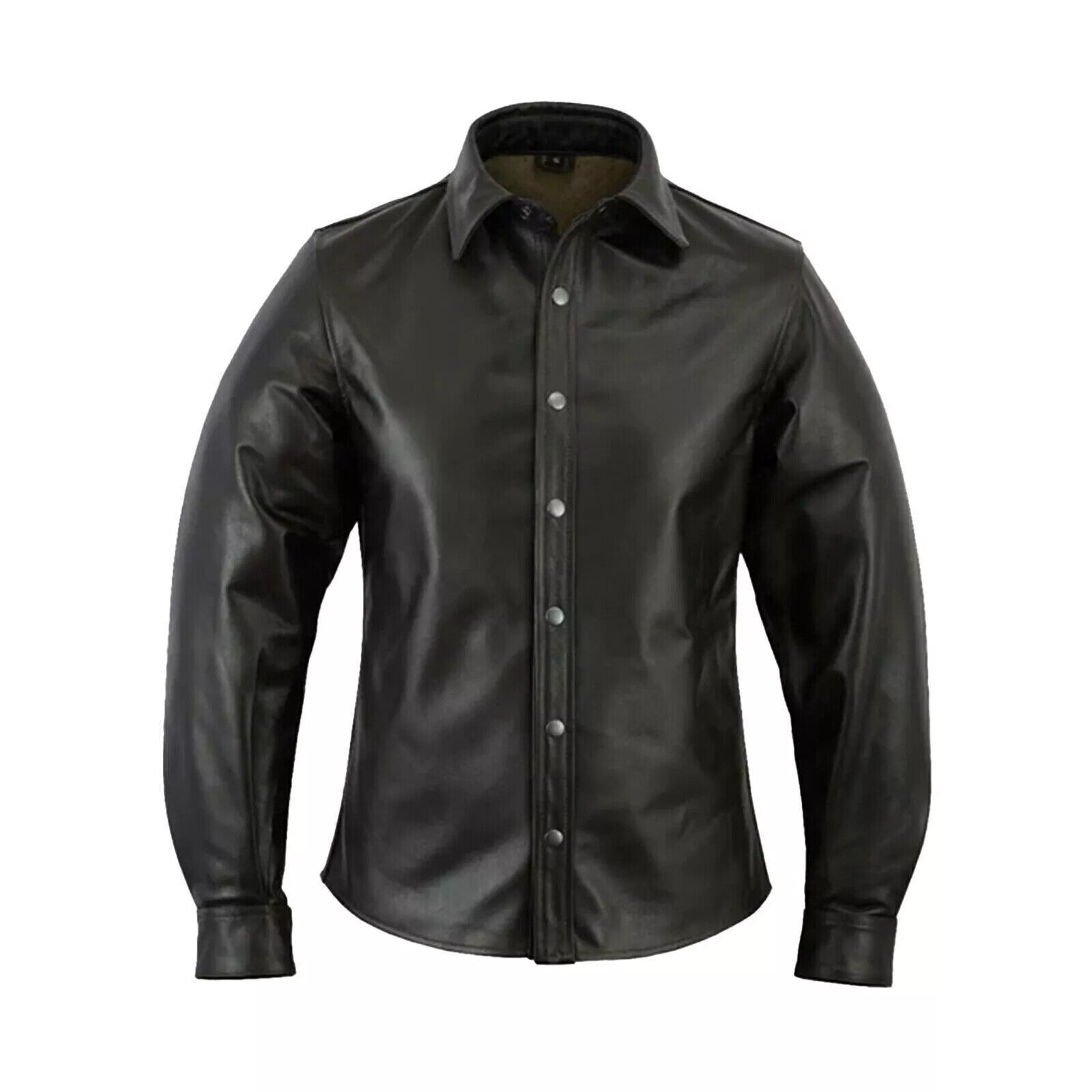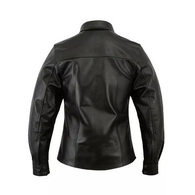 Camicia nera da uomo in vera pelle di agnello morbida fatta a mano camicia casual da moto \ FS