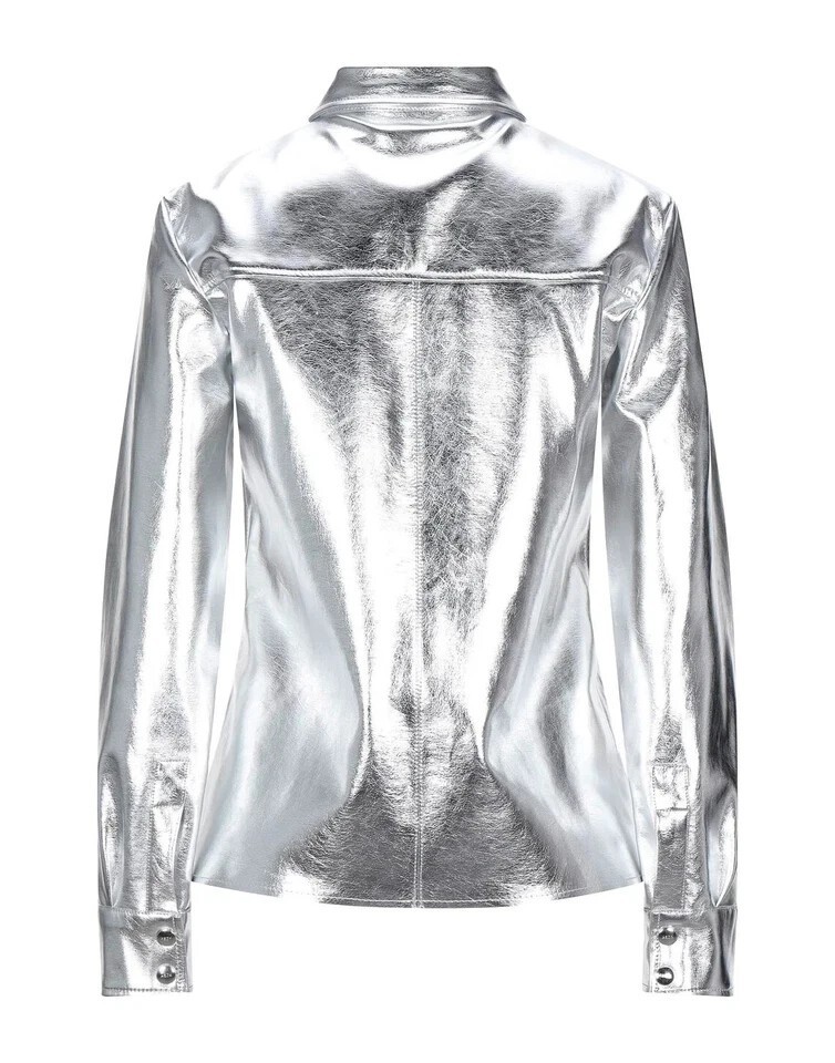 Camisa de mujer plateada de cuero genuino de piel de cordero hecha a mano ele...