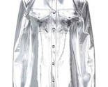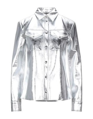 Primary image for Camisa de mujer plateada de cuero genuino de piel de cordero hecha a mano ele...
