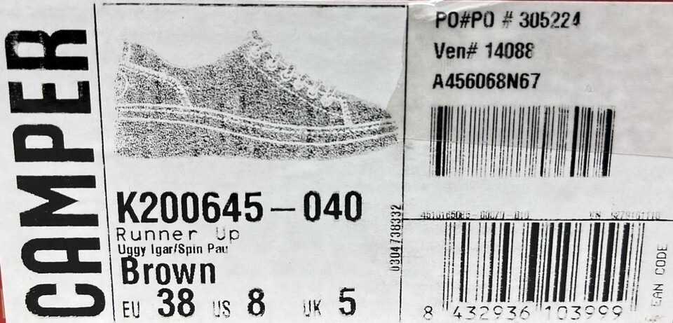 Camper Runner Up Size US 8 M EU 38 Women's Leather Shoes Sneakers Medium Brown THIS SHOE'S CONDITION: NEW WITH BOX. -Notes: IF THE ITEM IS NOT TO YOUR EXPECTATION WE OFFER A 30 DAY RETURN POLICY. ABOUT US: We specialize in footwear shoe accessories at a highly discounted price. We have a selection of new shoes, and also some displays, demos, pre-owned as well. PHOTOS: New Shoes: We usually send the the exact shoes pictured but may occasionally use our own stock images to represent several shoes. Store Displays, Demos, Pre-owned Shoes: We will send the EXACT shoes pictured here. A NOTE ABOUT OUR PRE-OWNED SHOES: We try to catch everything and describe it in the listing, but there are some things we may miss on occasion. This is why we take several pics of all pre-owned shoes from every angle possible so you as the buyer see what you will be getting. Also, because we are re-sellers we do not know the exact mileage of the shoes. SHIPPING: Shoes are in stock and ready to ship. We have a 1 day handling time but will usually ship same day if you purchase before 3PM Central Standard Time Need the item faster? We offer priority, expedited, and express one- day shipping on nearly all of our items We will combine shipping for expedited and one day deliveries. International Buyers Please Note: Import duties, taxes, and charges are not included in the item price or shipping cost. These charges are the buyer's responsibility. Please check with your country's customs office to determine what these additional costs will be prior to bidding or buying. QUESTIONS? Message us- we are usually very fast at responding! Listing and template services provided by inkFrog