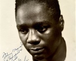 Canada Lee (March 3, 1907 - May 9, 1952) autographed vintage 1940s photo signed in blue steel-tip fountain pen and inscribed To Johnny Meyers Jr. With God-speed good- luck Sincerely Canada Lee. A fantastic handsome portrait of the boxer/actor dated on the backside 4/18/44 at 37 years of age. This signature has been authenticated by JSA James Spence authentication Certification Number: CH74413 and will come with the matching cert card you see in the scans. This photo has corner creasing but the inside image is very fine. Canada Lee was an American professional boxer and actor who pioneered roles for African Americans. After careers as a jockey, boxer and musician, he became an actor in the Federal Theatre Project, including the 1936 production of Macbeth adapted and directed by Orson Welles. Lee later starred in Welle's original Broadway production of Native Son (1941). A champion of civil rights in the 1930s and 1940s, Lee was blacklisted and died shortly before he was scheduled to appear before the House Un-American Activities Committee. He advanced the African-American tradition in theatre pioneered by such actors as Paul Robeson. Lee was the father of actor Carl Lee. Credits include Lifeboat (1944), Cry, the Beloved Country (1951), Body and Soul (1947), Keep Punching (1939), The Chevrolet Tele-Theatre (1950), and Lost Boundaries (1949). This photo will come in a clear hard top load for display. Buy with confidence we have been selling autographs since 1992.