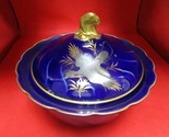 CAPEANS SPAIN PORCELAINE COVERED FOOTED BOWL GOLD AND BLUE[*aB]