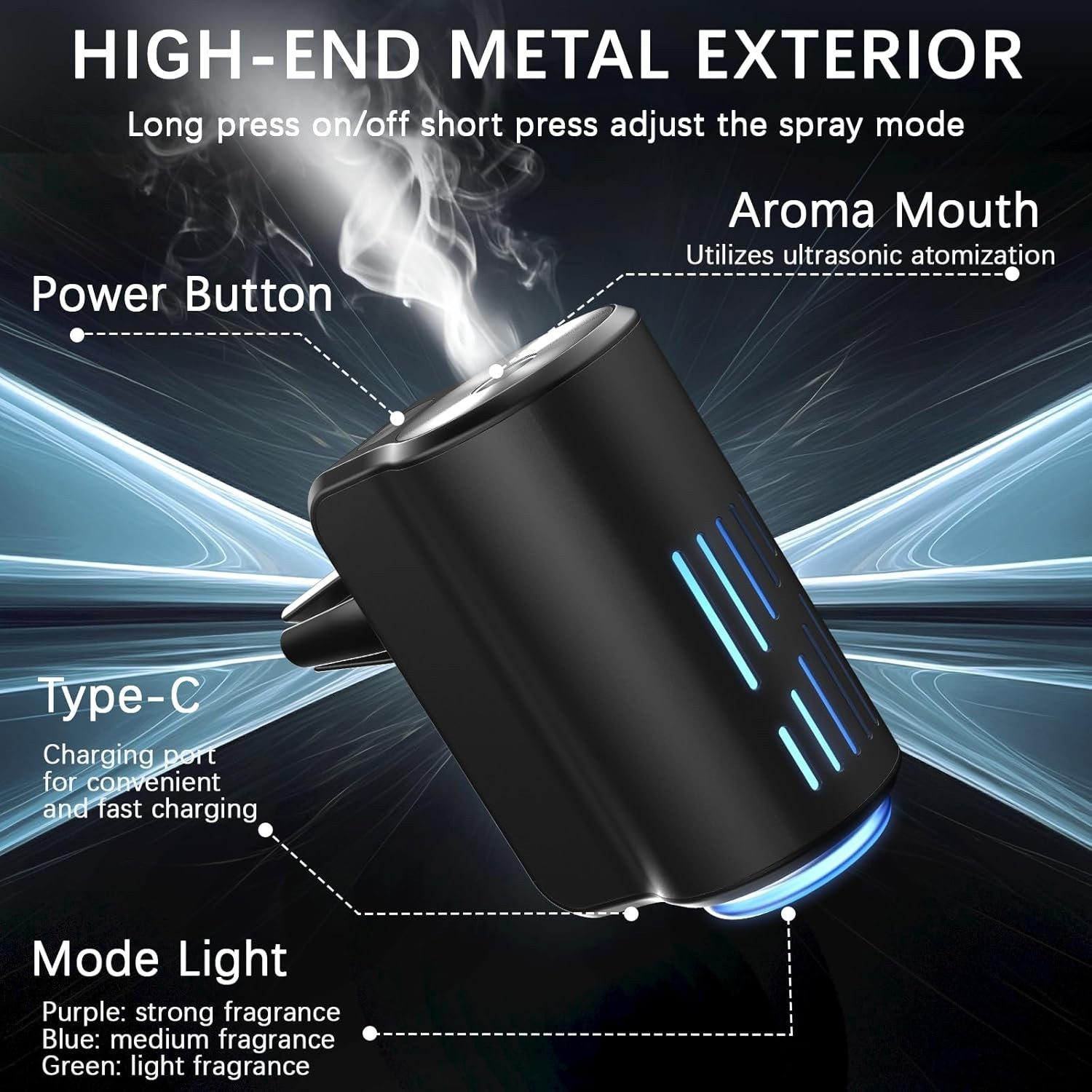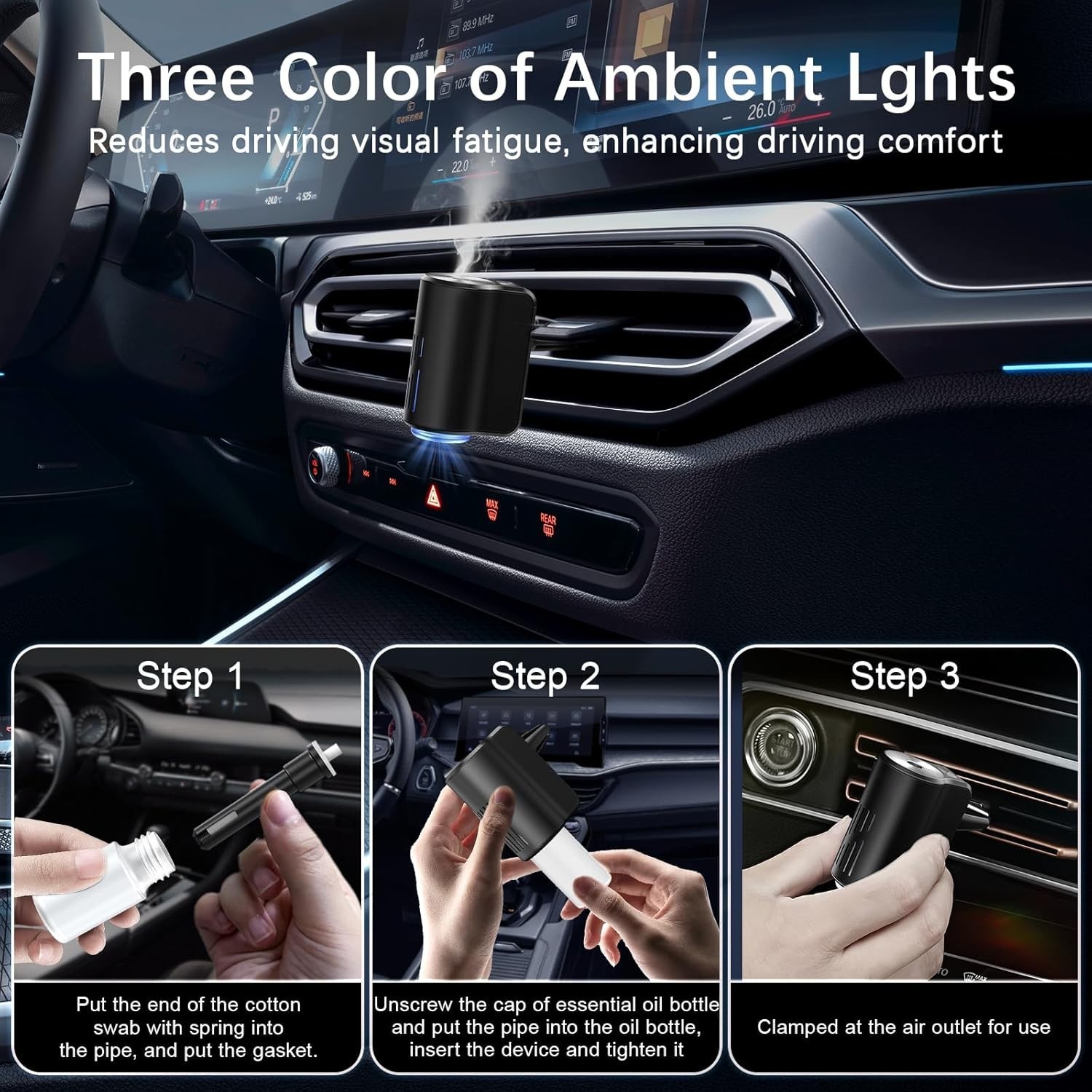 - Car Air Freshener Diffuser, Smart Car Air Freshener with Three Adjustable Light