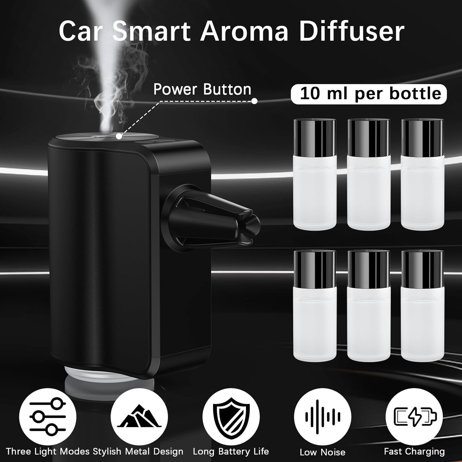 : The car diffuser is made of high quality aluminum alloy, sturdy and environmentally friendly. The simple and exquisite appearance with matte metal texture, enhancing the interior with style and luxury, suitable for all kinds of car interior styles. The 6 bottles of essential oils extracted from natural plant extracts. This car air freshener spray is safe