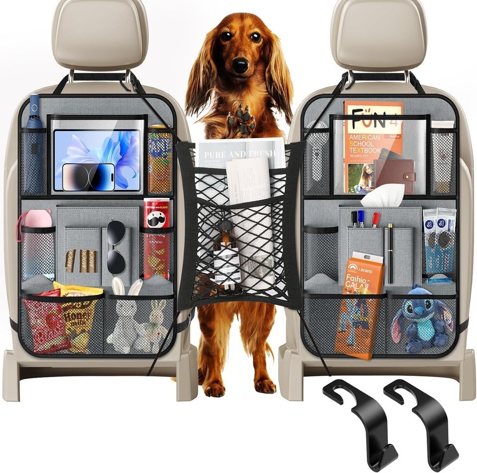 Product List: 2 car back seat storage bags/2 hooks + 1 Dog Barrier for Cars(Car Storage Bag)