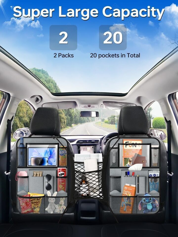 ?Plenty Of Pockets? The backseat car organizer(2 pack) comes with 20 different sized storage compartments, including a clear tablet holder, pockets for bottles and large mesh pockets for other essentials