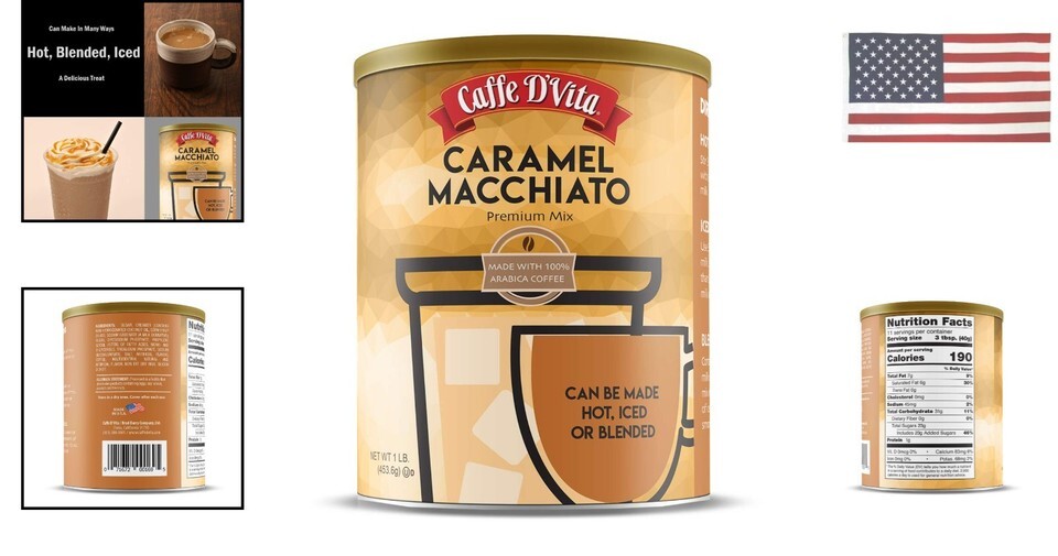 - Caramel Macchiato, Instant Coffee Powder Mix for Lattes, 16 oz (454 g) Can, G...