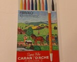 This vintage ten Caran d'Ache Fibralo Fibre Felt/Brush Tipped Markers are a high-quality art supply. The dark green marker and light blue marker are pretty much dried out. The others still have some color left in them. These Swiss-made markers come in a metal tin container, making them convenient for storage and transport. Perfect for artists and crafters, these markers are ideal for adding a touch of color to your projects with their multicolored palette. The fibre-tipped design provides smooth and precise lines, making them a versatile and essential addition to any art supply collection.