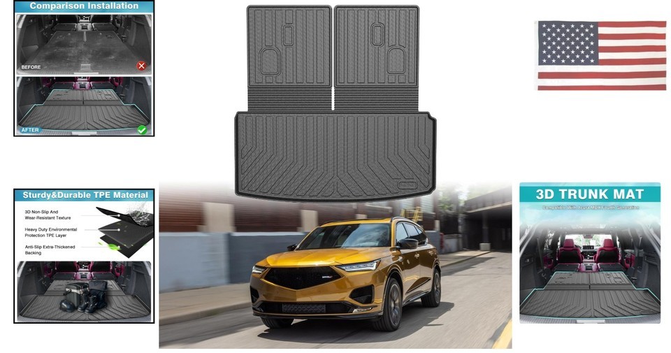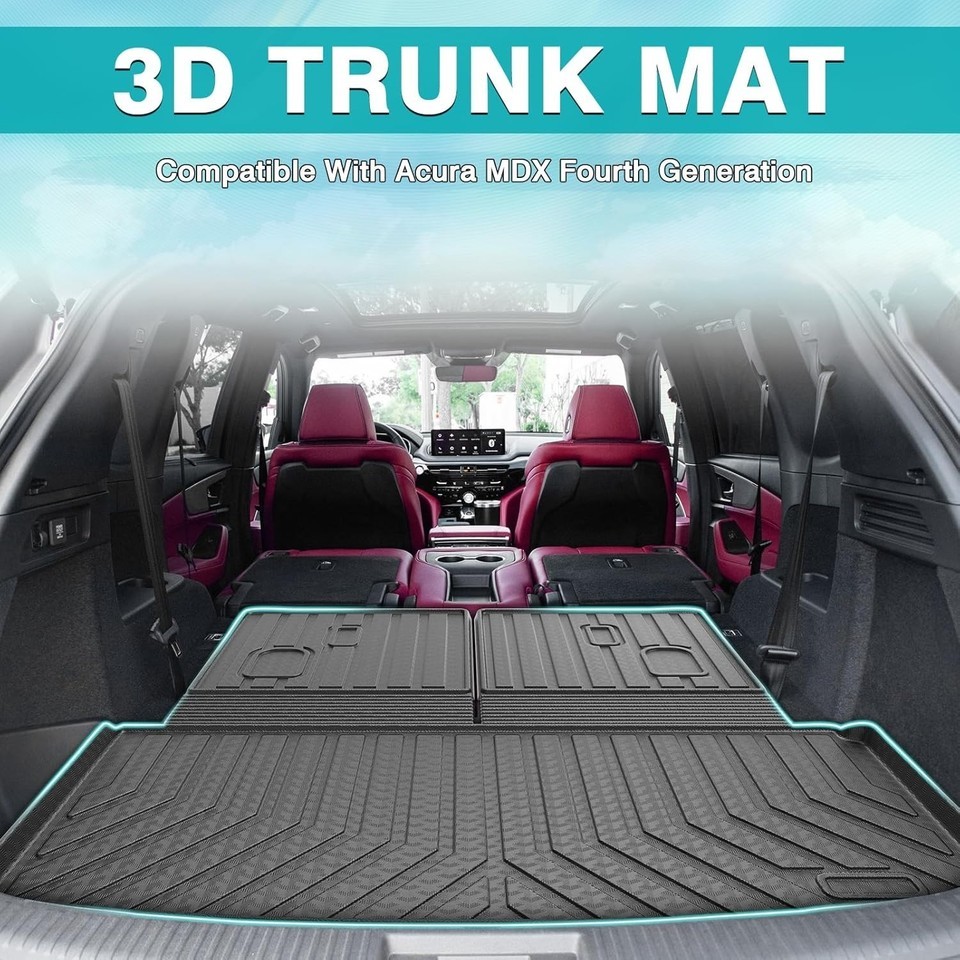 - Cargo Liner Rear Trunk Mat for Acura MDX 2022-2024 Behind 2nd Row Seats, Black