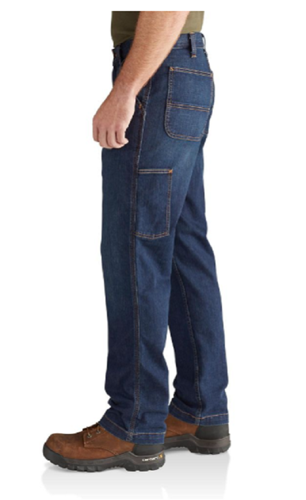The Carhartt Men's Rugged Flex Relaxed Dungaree Jean can stand up to almost anything. These jeans are made of durable, abrasion-resistant denim, with Rugged Flex stretch technology, giving you enough stretch for ease of movement. These straight-leg jeans are cut for a relaxed fit, with extra room in the seat and thigh. And, they also feature multiple tool and utility pockets, and strong, sewn-on-seam belt loops, adding to their versatility and durability.Carhartt Rugged Flex technology moves and stretches with you throughout the day so that whatever you're doing, it's easier to do. Rugged Flex garments must meet the Carhartt's defined standards for stretch, recovery, and durability, so when you put on a Rugged Flex garment, you know it won't let you down. You'll find Rugged Flex in shorts, shirts, pants, jackets, and boots because you need gear that helps you move, not gear that holds you back.