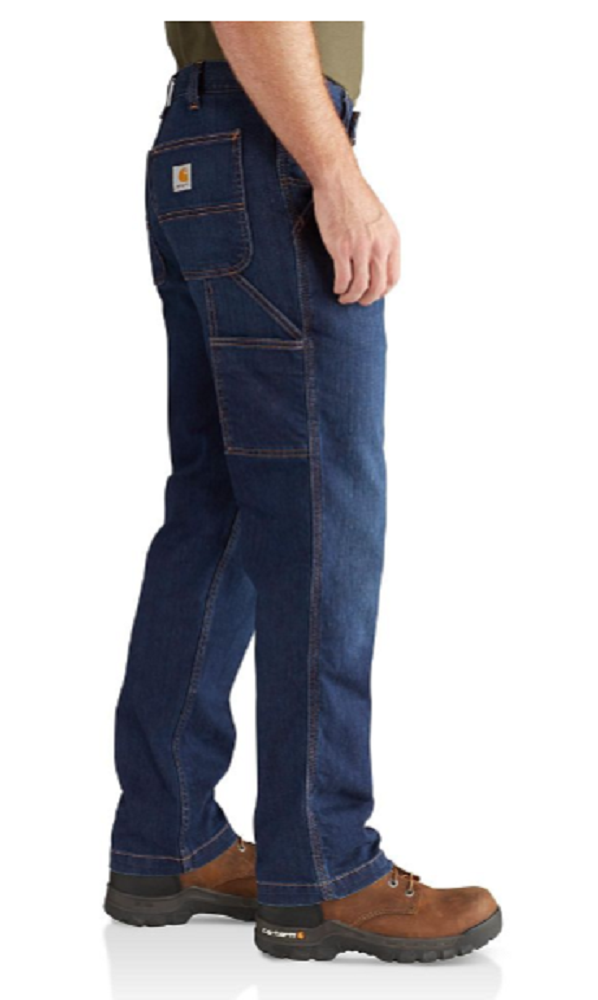 The Carhartt Men's Rugged Flex Relaxed Dungaree Jean can stand up to almost anything. These jeans are made of durable, abrasion-resistant denim, with Rugged Flex stretch technology, giving you enough stretch for ease of movement. These straight-leg jeans are cut for a relaxed fit, with extra room in the seat and thigh. And, they also feature multiple tool and utility pockets, and strong, sewn-on-seam belt loops, adding to their versatility and durability.Carhartt Rugged Flex technology moves and stretches with you throughout the day so that whatever you're doing, it's easier to do. Rugged Flex garments must meet the Carhartt's defined standards for stretch, recovery, and durability, so when you put on a Rugged Flex garment, you know it won't let you down. You'll find Rugged Flex in shorts, shirts, pants, jackets, and boots because you need gear that helps you move, not gear that holds you back.