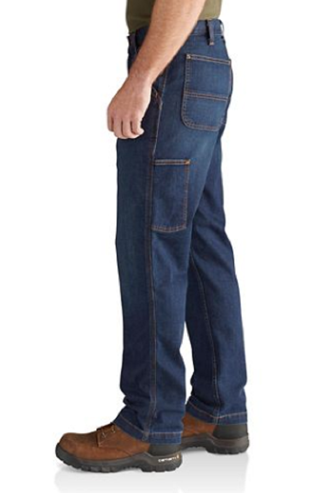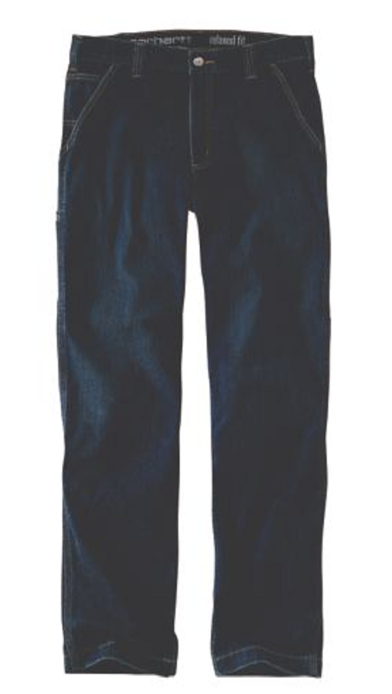 Made of 12 oz., 85% cotton/14% polyester/1% spandex denim fabric Built to move with Rugged Flex stretch technology Relaxed jean allows for more room to move with a comfortable fit through the seat and thigh Carhartt 102808-498 jean features multiple tool and utility pockets Imported Strong sewn-on-seam belt loops Straight leg opening