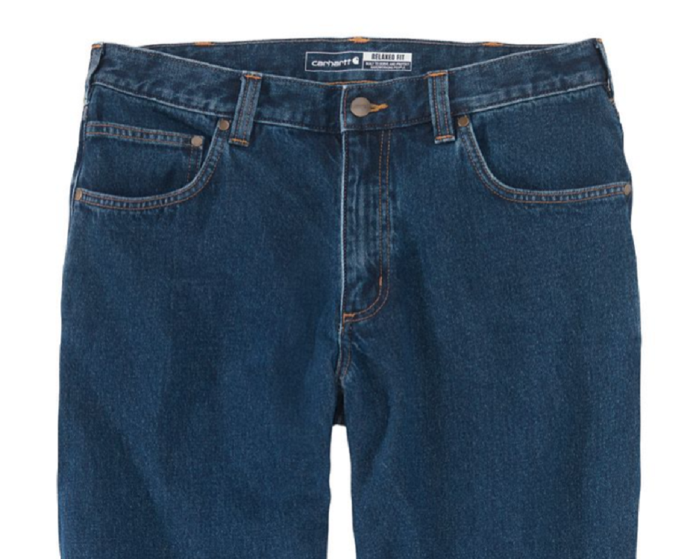 Work all day in style and comfort thanks to your Carhartt Men's Relaxed Fit 5-Pocket Jeans. This pair of 5-pocket jeans is made with 100% cotton denim for lasting reliability. These 5-pocket jeans feature stronger sewn-on-seam belt loops for long-term strength. Each pair of relaxed fit jeans has a comfortable fit through the seat and thigh with more room to move and a straight leg opening.