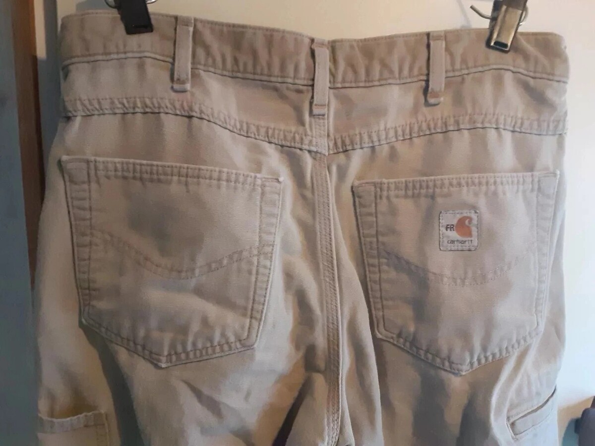 Carhartt Flame Resistant Canvas Pants Mens Size 32x32 FRB159 GKH Distressed from everyday use.