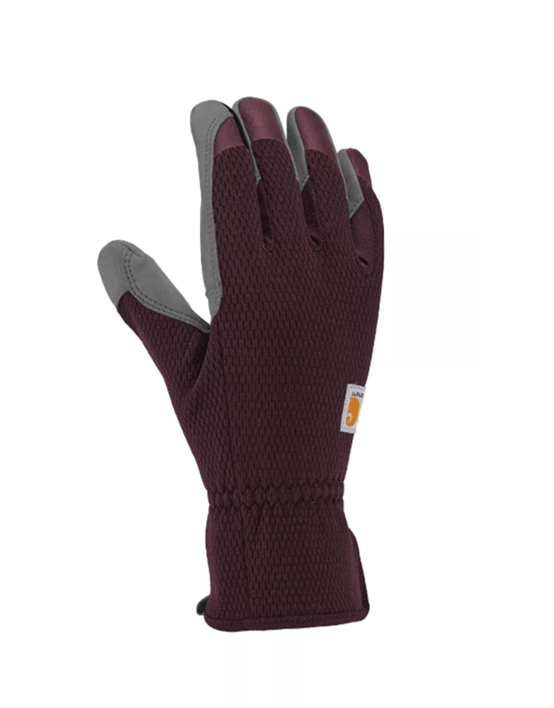 These Carhartt Women's High-Dexterity Nylon Padded Palm Touch-Sensitive Long Cuff Work Gloves have a breathable design that is ideal for warm days spent out in the yard. Made of textured spandex with a padded palm, utilizes durable synthetic material on the palm and fingertips to give a solid grip on tools. Side vent cuff for breathability.