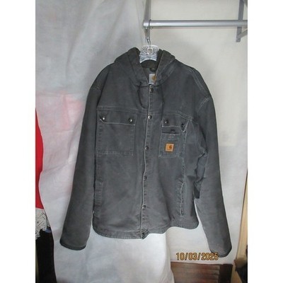 Carhartt Mens Gray Washed Duck Active Hooded Jacket Sherpa Lined Workwear