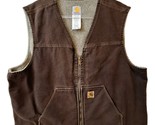 Carhartt Sherpa Lined Mens Zip Chore Coat Vest Canvas Dark Brown Sz 2XL V26 DKB