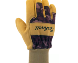 Work comfortably wearing the Carhartt Adult Suede Work Gloves. These duck synthetic suede knit cuff gloves have reinforced palms to withstand wear and tear. The knuckle protection helps you work safely, and the Carhartt logo and camo pattern combine for a timeless look.