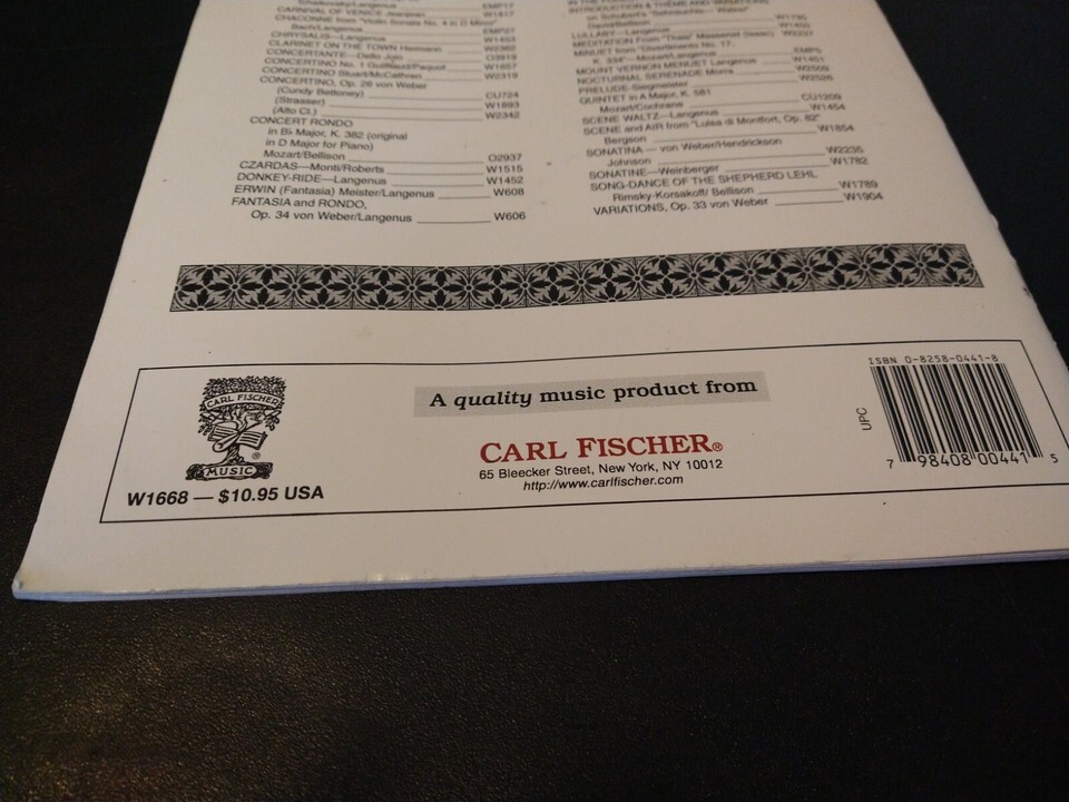 Carl Fischer Mozart Concerto for Clarinet (K622).