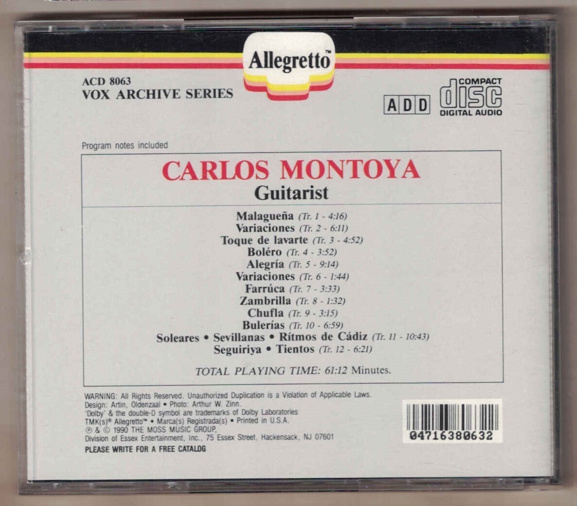 Primary image for Carlos Montoya CD "Guitarist" BX2