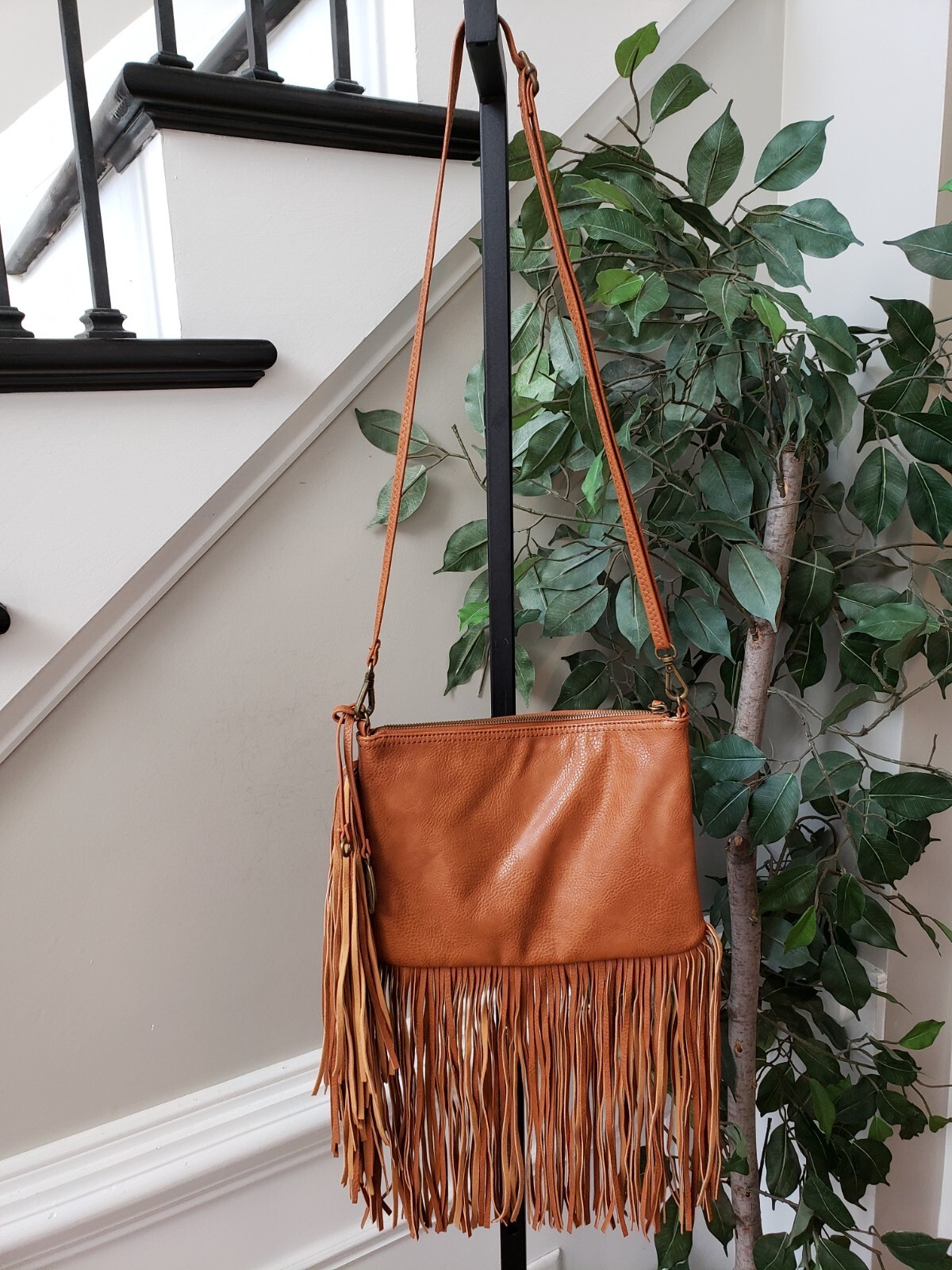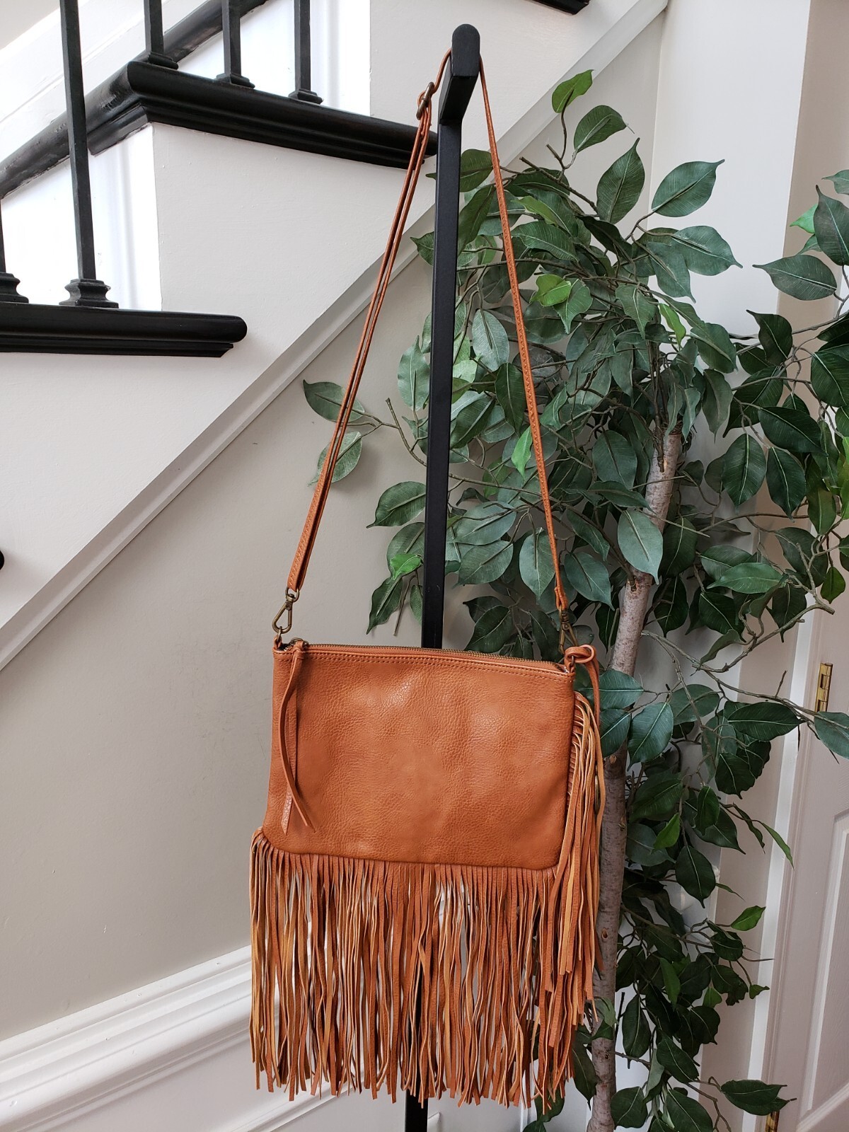 - Carlos Santana Crossbody Womens Brown Polyurethane Lined Fringe Shoulder Strap