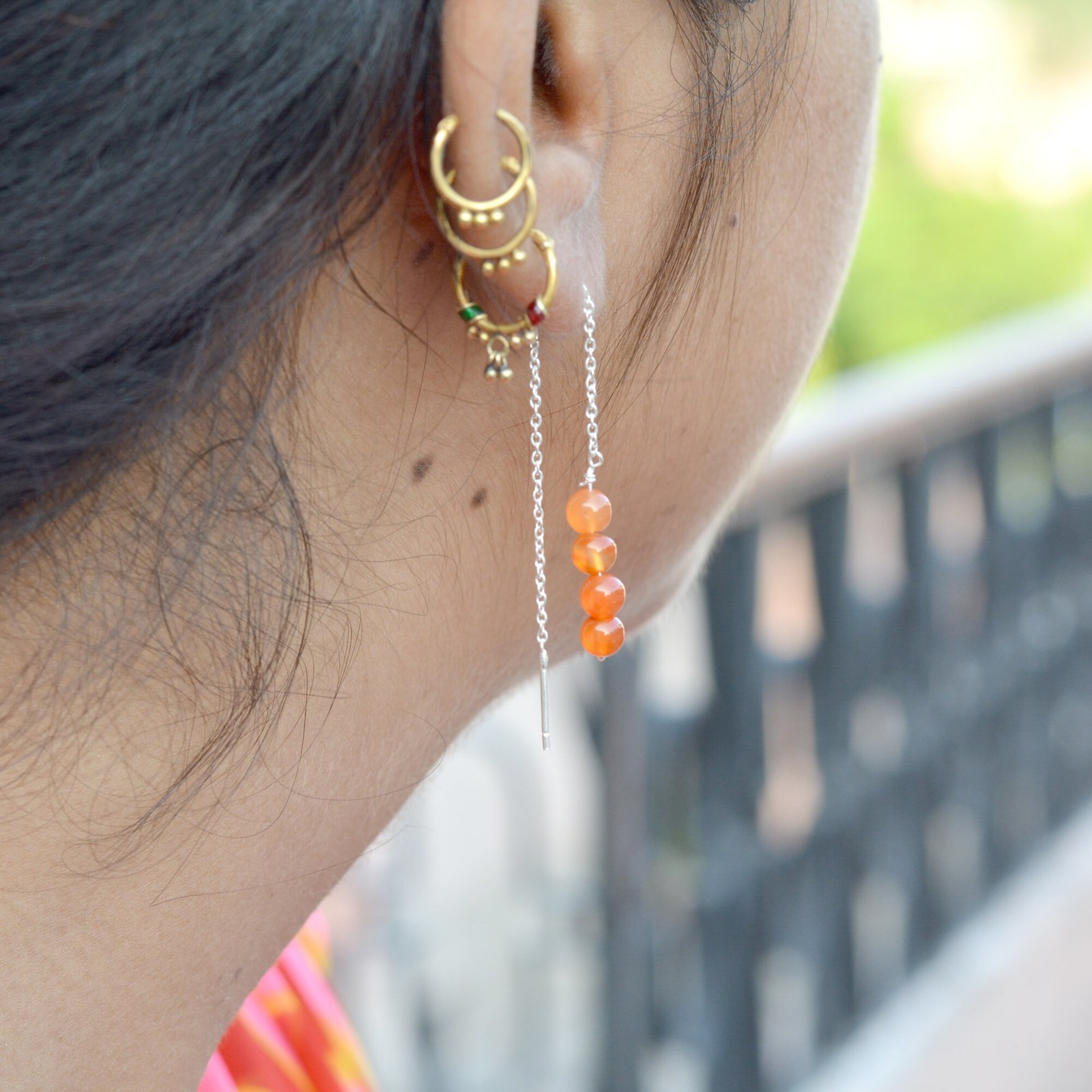 Carnelian Beads And 925 Sterling Silver Drop Dangle Threader Earrings, Great for everyday as they are still very lightweight and have an overall delicate look. They have a distinct modern tribal vibe. These minimalist threader earring are easy to wear